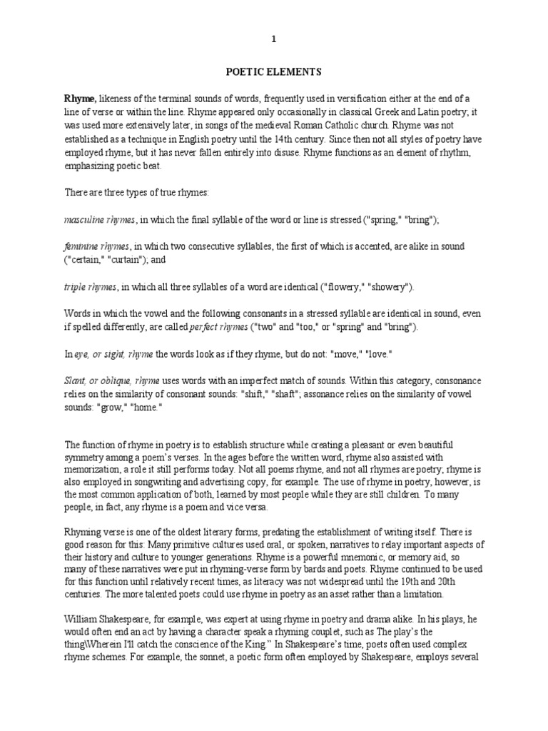 Elements Of Poetry Pdf Metre Poetry Poetry